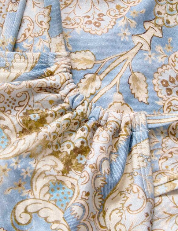 Daylight Kids Gathered 1Pc i bandana-blommigt denim från vår Resort Swim 2026-kollektion. En badedräkt för barn med rynkad halterneck och korsade axelband.