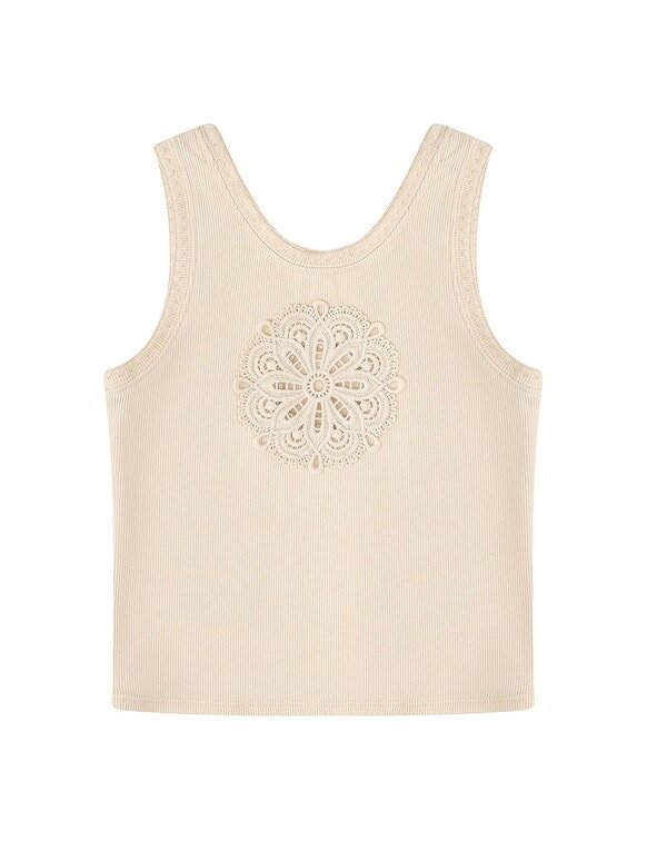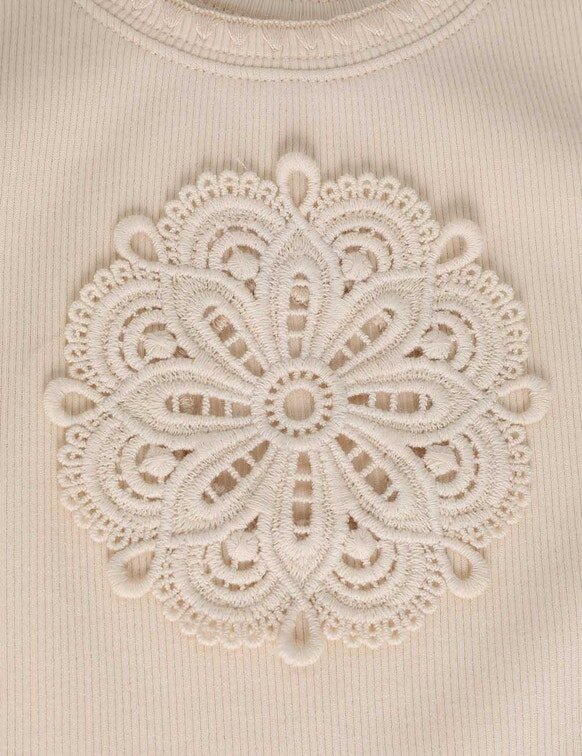 Aster barn-T-shirt i Ecru från vår Summer Swim 2026-kollektion. En bomullströja för barn med rund halsringning och virkat broderi.