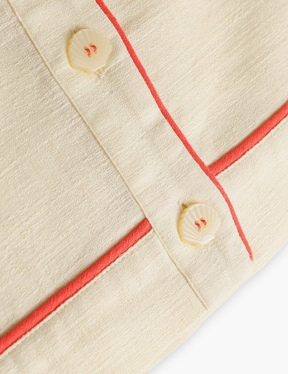 Aster Kids broderad skjorta i elfenben från vår Summer Swim 2026-kollektion. En bomullsskjorta för barn med klassisk krage, kontrastkant och knappar mitt fram.