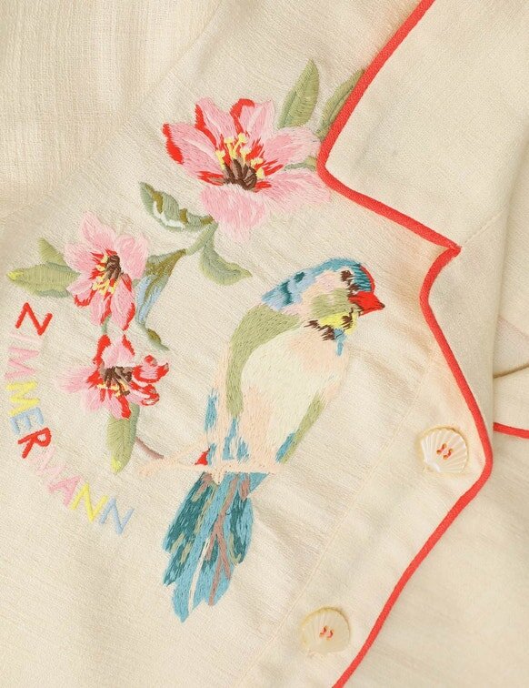Huvudmaterial: 100 % bomull; Broderi: 100 % polyester; Fusering: 100 % polyesterHandtvättas separat i kallt vatten med milt tvättmedelTa bort eventuella lösa dekorationer före tvättBlötlägg, gnugga eller vrid inteAnvänd inte blekmedelTorkas inte i torktumlareTorkas i skuggan;Stryk på låg temperatur med skyddstygFläcktvätta inte;Kemtvätta inteKontrollera alltid etiketten eller skötselkortet för specifika skötselanvisningar.