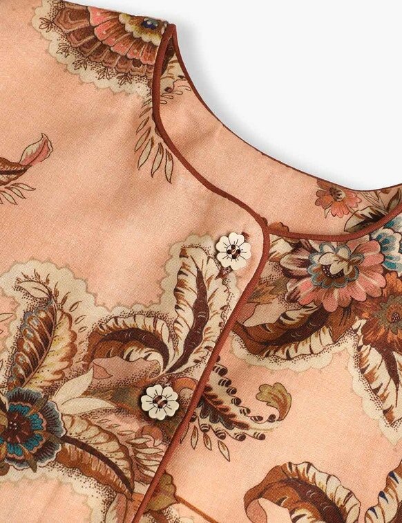 Aster Kids-klänning med kontrastkant i Peach Jacobean från vår Summer Swim 2026-kollektion.