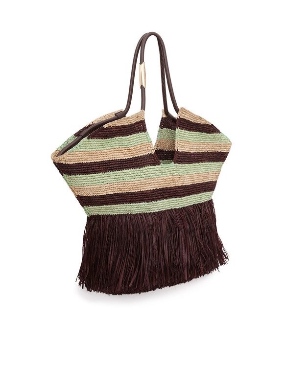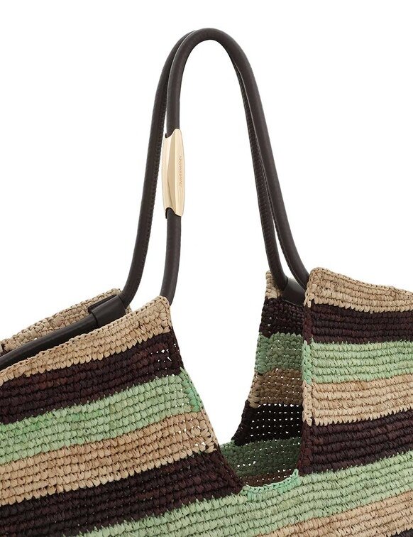 Huvudmaterial: RaffiaTillverkad av handvävd raffia på Madagaskar. Naturlig slitage och variationer är en del av dess karaktär. Rengör fläckar med en fuktig trasa. Undvik kemiska rengöringsmedel för att förhindra missfärgning. Med tiden kan raffia mjukna, blekna eller förlora sin styvhet. För att undvika skador, håll den borta från fukt, färgade tyger och accessoarer. Förvara i en torr miljö i den medföljande dammpåsen.Kontrollera alltid etiketten eller skötselkortet för specifika skötselanvisningar.