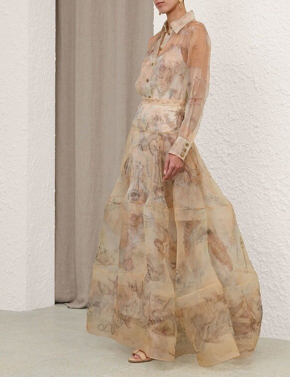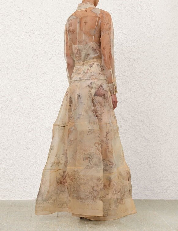 Rebellion Lantern Maxi-kjol i Ocean Atlas från vår Cruise 2026-kollektion, Twisted Romance. En maxikjol i siden med fast midjeband, voluminösa volanger och en osynlig dragkedja mitt bak.